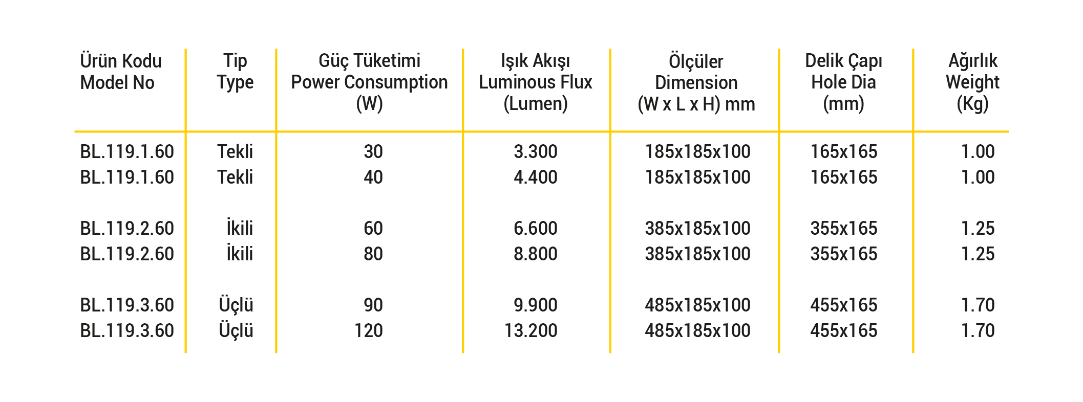 IŞIK KAYNAĞI | High Power Led / Mid Power Led |